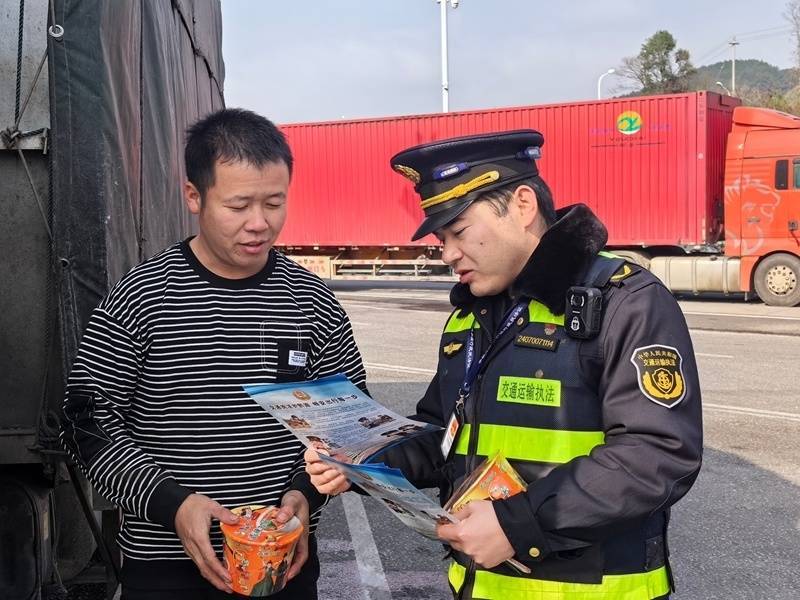 暖心服务与普法宣传同频发力,让安全理念深入人心。在开展志愿服务的同时,执法人员将交通运输法律法规宣传融入服务全过程,通过发放宣传资料、面对面解读政策等方式,向司乘人员重点普及超限超载治理、道路运输安全规范、冬季应急避险技巧等知识,细致讲解相关违法行为的危害及法律后果,进一步提升群众的法治意识和安全出行能力,为辖区道路安全畅通筑牢思想根基。